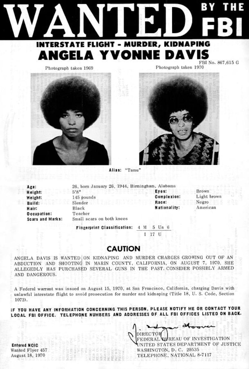 Lejos de una intelectualidad desvinculada de la praxis, Angela Davis construyó su pensamiento desde la experiencia concreta de la persecución política. A comienzos de los años setenta fue acusada por el FBI de conspiración, incluida en la lista de personas más buscadas, capturada y encarcelada. Su caso generó una campaña internacional de apoyo sin precedentes que se conoció como Free Angela y, tras un proceso judicial atravesado por el racismo y la criminalización ideológica, fue finalmente absuelta de todos los cargos. Ese episodio consolidó su figura pública y profundizó su reflexión sobre el Estado, la violencia institucional y el sistema penal como herramientas de control social.Buscada (Redes Sociales)