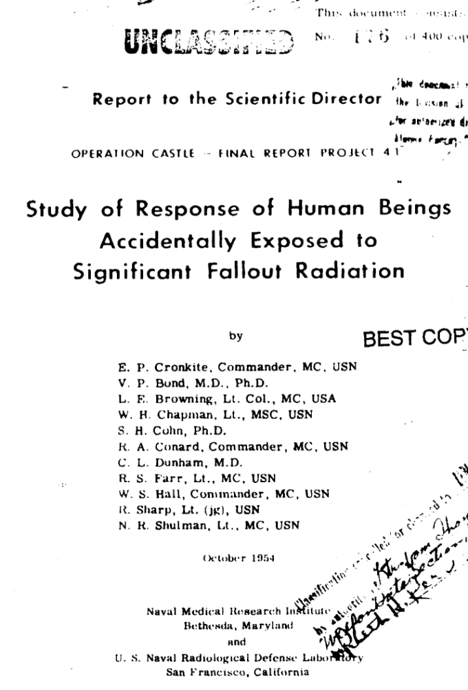 One of Bond’s colleagues, Dr. Joseph Hamilton of the University of California Medical School in San Francisco, said more candidly that the radiation experiments (which he had helped oversee) “had a little of the Buchenwald touch.”