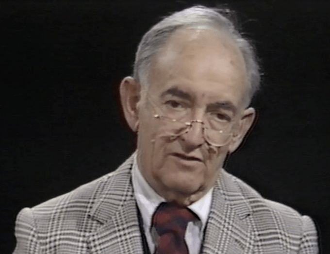 Radiologist Dr. Eugene Saenger, who performed whole body radiation experiments at the University of Cincinnati Medical School on 88 cancer patients, most of whom were poor and black. (Screengrab from a 1984 interview that was the Oral History of Medicine in Cincinnati series and has been digitally preserved in the UC Digital Resource Commons.)